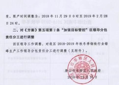(一)唐山瑞豐鋼鐵(集團(tuán))有限公司限產(chǎn)產(chǎn)能不變,限產(chǎn)時(shí)間調(diào)整;