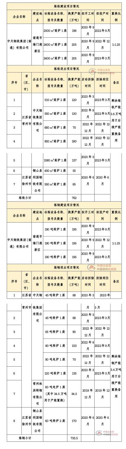 2019年12月10日,江蘇省工業和信息化廳發布《中天鋼鐵集團(南通)有限公司產能置換方案的公示》(以下簡稱“《公示》”)。