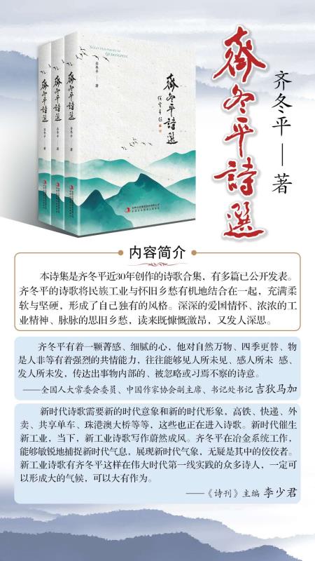 一般來說,詩人身份都是“兼職”,詩人們大都另有職業(yè)。詩人的寫作與他所從事的職業(yè)之間的關(guān)系有的明顯有的不太明顯。有些詩人的作品一看便知他是從事什么職業(yè)的,有些詩人的作品則幾乎看不出他所從事職業(yè)的痕跡。但不管怎么說,職業(yè)對(duì)于寫作者是有著重要而深遠(yuǎn)影響的,職業(yè)決定和左右著一個(gè)人的生活內(nèi)容、社會(huì)交往、觀念視野等的諸多方面,一個(gè)人不受他職業(yè)的影響是不可能的。詩人齊冬平長期供職于中冶集團(tuán)(全稱中國冶金科工集團(tuán)有限公司),這是一家以冶金工業(yè)建設(shè)、運(yùn)營服務(wù)為主的大型央企,他的詩似乎以上兩種狀況都有,有的與他的工作沒什么關(guān)系,有的則有著鮮明的“中冶”特色,整體而言構(gòu)成了一個(gè)非常豐富、多元、獨(dú)具個(gè)性特征的藝術(shù)世界。在齊冬平這里,“詩”和“人”是高度統(tǒng)一的,他的文字背后有著明晰的個(gè)人形象,從他的詩中能真切地感受到他的人,詩歌體現(xiàn)著他的“初心”,也體現(xiàn)著他的“鄉(xiāng)愁”。
