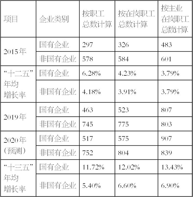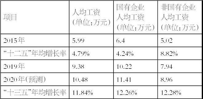 “十三五”期間國有企業(yè)、非國有企業(yè)人均工資年均增幅分別為12.26%和12.28%,差距不大,國有企業(yè)人均工資水平仍明顯高于非國有企業(yè)。