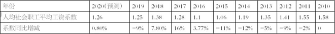 表4 社會(huì)職工平均工資系數(shù)增長情況