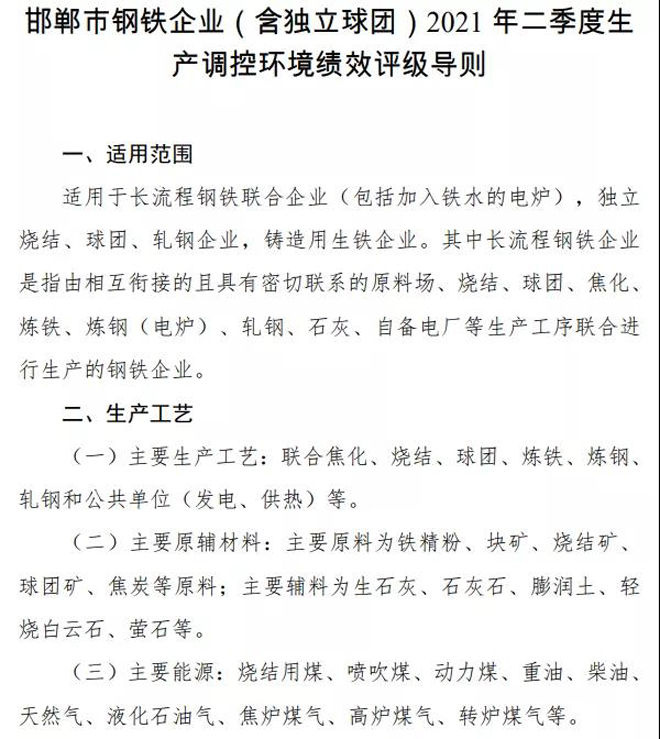 附:邯鄲市鋼鐵企業(yè)(含獨立球團)2021年二季度生產(chǎn)調(diào)控環(huán)境績效評級導則