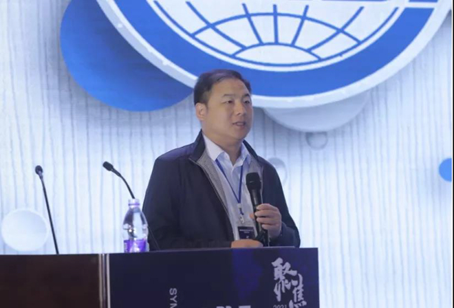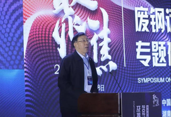 圖為中國廢鋼鐵應用協會副秘書長都興亞在研討會上作報告