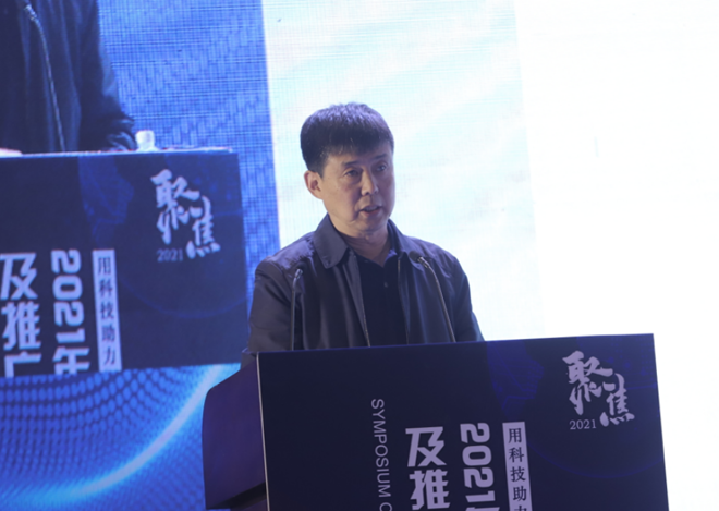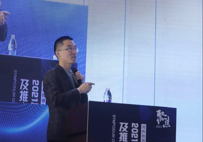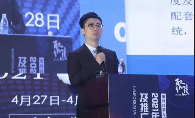 圖為鐳目科技項目經理田祖光在研討會上作報告