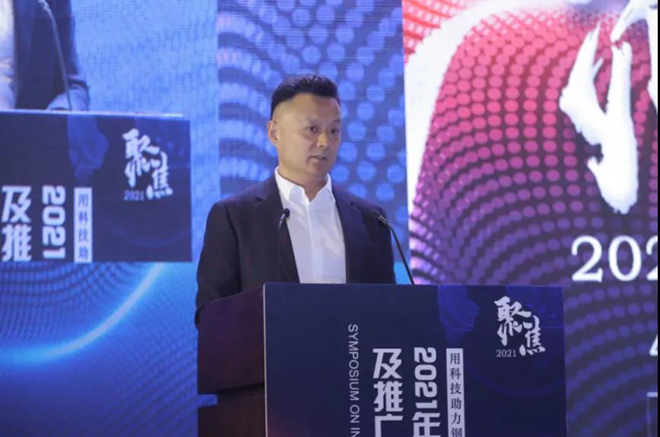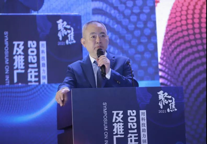 圖為魯麗鋼鐵信管中心主任李良永在研討會上作報告