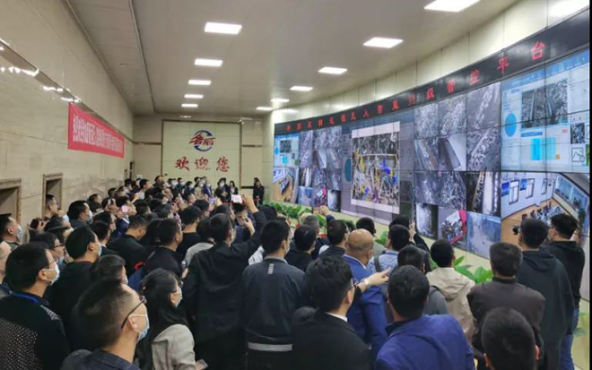 圖為參會代表實地參觀魯麗鋼鐵廢鋼遠程無人智能判級管控中心