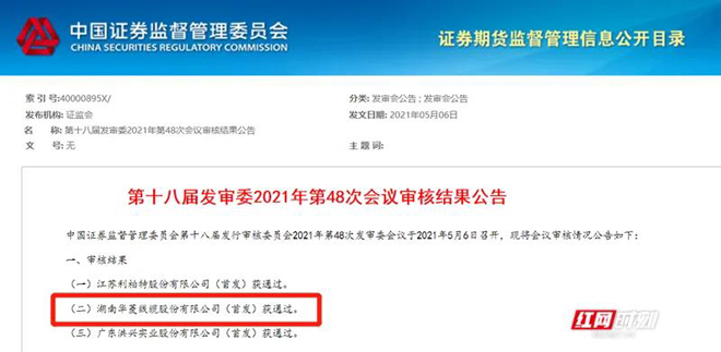 華菱線纜IPO獲通過 華菱集團(tuán)即將迎來第2家A股公司