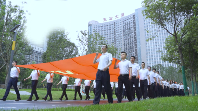 隨后,震撼的紅歌聯唱拉開帷幕,本次紅歌聯唱以快閃為特色,“埋伏”在川滬會場觀眾中的近60名演唱人員驚喜現身,深情演繹,同時不斷變換隊形、羅列方陣,并通過視頻在川滬兩個會場間互動“飆歌”,先后聯唱《唱支山歌給黨聽》《過雪山草地》《社會主義好》《迎風飄揚的旗》《走向復興》等歌曲,用歌聲表達對黨的摯愛,喚醒崢嶸歲月的記憶,迸發奮勇向前的力量。與會人員時而鼓掌助威,時而揮舞手中的紅旗,向中國共產黨百年華誕致敬,為企業勇攀更高峰擂鼓蓄力,會場氣氛再次達到高潮。