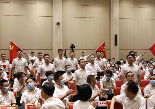 大會以習近平新時代中國特色社會主義思想為指導,深入貫徹黨的十九大和十九屆二中、三中、四中、五中全會精神以及習近平總書記在慶祝中國共產黨成立100周年“七一勛章”頒授儀式上發表的重要講話精神,將學黨史、悟黨史、用黨史貫穿大會主線,回顧了中國共產黨百年奮斗的艱辛歷程和輝煌成就,循著新中國冶金建設事業和企業自身發展脈絡追尋黨的光榮足跡,表彰了一年來在創先爭優活動和“黨旗飄揚、黨徽閃光”行動中涌現出的先進集體和優秀個人,展望冶金運營服務事業發展的光明前景,進一步動員全體黨員干部職工以昂揚姿態朝著實現建設“美好中冶寶鋼”奮斗目標、推動冶金運營服務高技術高質量發展奮勇前進。