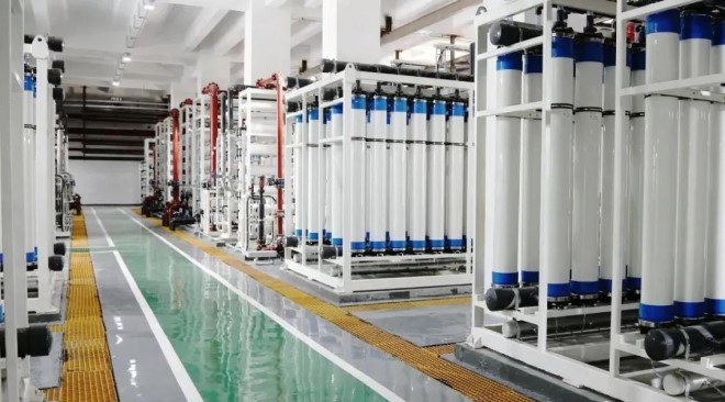該項目運用諸多先進技術,廢水深度處理效能可達世界領先水平。值得一提的是,該項目采用了“雙極膜制酸堿”“低溫蒸發結晶”等創新工藝,開創性地將冷軋廢水變廢為寶,工藝制備的鹽酸和液堿實現生產再利用,每年產生工業鹽可作為產品對外銷售,降低了運行維護成本。同時,工藝流程中關鍵技術參數采用在線檢測手段,通過自動控制系統實現了廢水站智慧運行。后續該項目全面投運后,廢水處理能力可達到每小時400立方米,每年可實現回用廢水240萬噸,真正意義上實現廢水零排放。