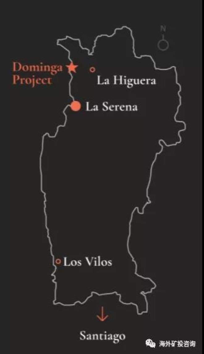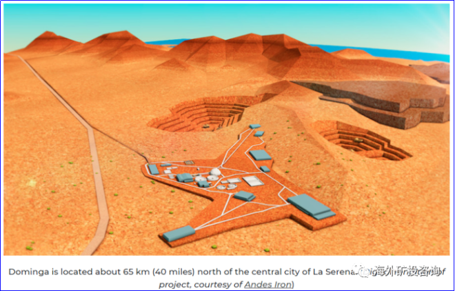 Dominga銅精礦和鐵礦開采項目位于首都圣地亞哥以北約500公里處靠近生態保護區,該礦年產1200萬噸鐵精粉和15萬噸銅精粉,礦山壽命為27年,露天礦開采方式。