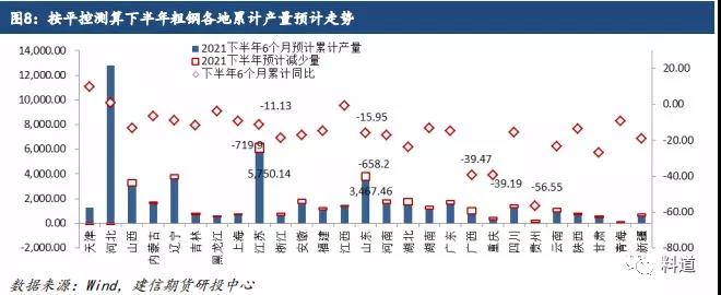 7月22日,近日山東省下發通知明確要求,今年粗鋼產量不超過7650萬噸,要求以2020年鋼鐵企業產量為基礎,其中粗鋼產量未納統的按調查產量,產能轉移的按換算產能,綜合考慮圖8:按平控測算下半年粗鋼各地累計產量預計走勢環保、能耗、產能利用率和布局規劃等因素進行壓減,確定各個鋼鐵企業產量控制目標。預計下半年對于粗鋼的壓減將主要集中在山東和江蘇等地區。