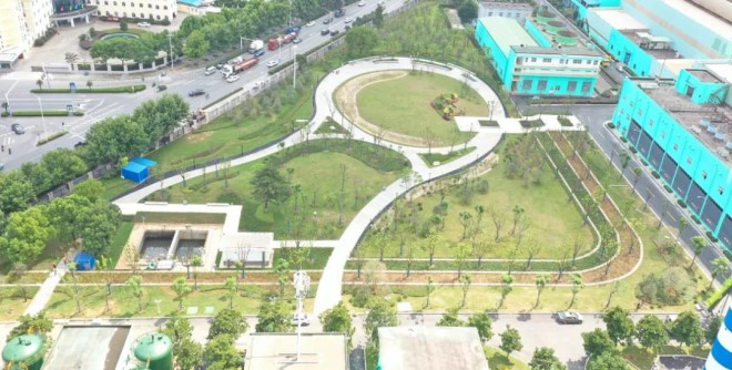 2021年6月,中冶賽迪承擔了馬鋼南區廠容整治項目“兩園三樓”EPC工程,主要包括:長材辦公樓、長材集控中心、共享服務中心三棟建筑,生態園、特鋼園兩個景觀園以及相關配套設施,新建建筑面積約1.4萬平方米,景觀面積約7.6萬平方米。項目對景觀環境進行全面提檔升級,引入雨水花園、生態花境、透水鋪裝等特色項目,促使廠區環境品質實現美麗“蝶變”,將馬鋼打造成為獨具特色、高效共享的花園式生態鋼廠。