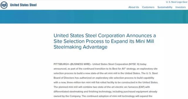 根據(jù)聲明,該公司董事會(huì)已授權(quán)對(duì)這家工廠進(jìn)行探索性選址。潛在新址包括印第安納州和伊利諾斯州,因美國(guó)鋼鐵公司在這些地方已經(jīng)有了電弧爐(EAF)業(yè)務(wù)。