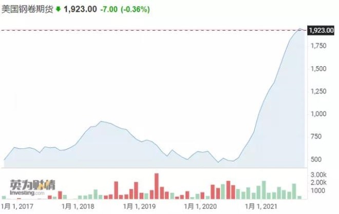 美國(guó)鋼鐵公司宣布這一消息之際,美國(guó)鋼卷期貨價(jià)格在過去一年上漲了兩倍多。雖然這給國(guó)內(nèi)供應(yīng)商帶來了額外利潤(rùn),但隨著全球經(jīng)濟(jì)逐步從疫情中復(fù)蘇,這也推高了汽車、風(fēng)力渦輪機(jī)到廚房電器等所有商品成本。