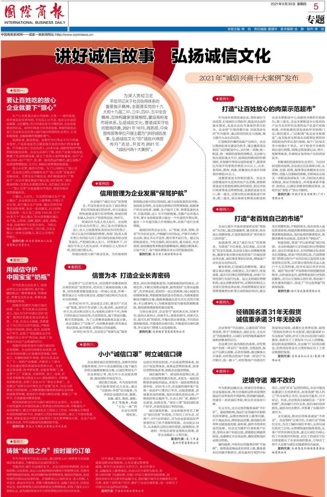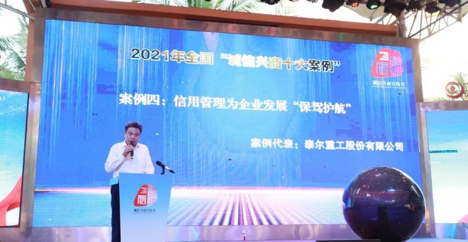 2021年9月28日,全國“誠信興商宣傳月”啟動儀式在海南省海口市舉辦。泰爾股份董事長邰正彪受邀現場參加啟動儀式,泰爾股份入選2021年“誠信興商十大案例”。