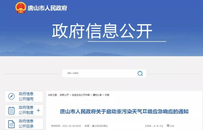 近日,唐山市人民政府發(fā)布了關(guān)于啟動(dòng)重污染天氣Ⅱ級(jí)應(yīng)急響應(yīng)的通知。