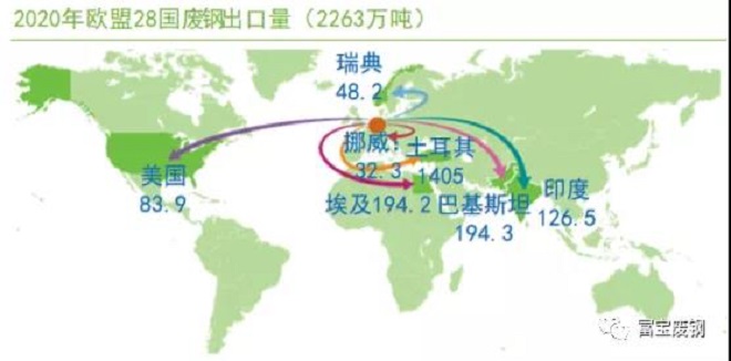 2、受影響的主要國家:土耳其一直是歐盟出口最大的目的地,2020年的歐盟共向土耳其出口廢鋼1405萬噸,占出口總量的62.1%。另外巴基斯坦從歐盟進口194.3萬噸,占比8.6%,埃及進口194.2萬噸,占比8.6%。市場人士認為廢鋼出口禁令可能適用于不符合歐盟廢物處理標準的國家,主要是非經合組織國家,此外,短期內歐盟可能會優先限制優質廢鋼、碎廢鋼和邊角廢鋼的出口,那么HMS廢鋼將繼續流向土耳其。土耳其從歐盟進口的廢鋼量可能不會出現劇烈變化,但次要買家巴基斯坦,印度等非經合組織國家,更有可能受到影響。