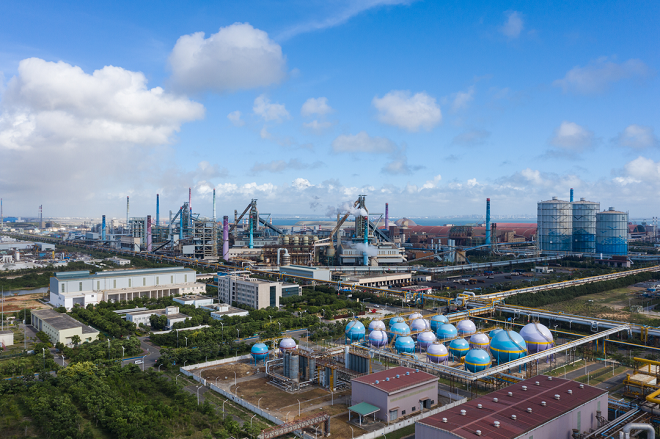 圖為中冶寶鋼運(yùn)營(yíng)服務(wù)的世界最高效率的綠色碳鋼制造基地湛江鋼鐵
