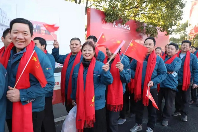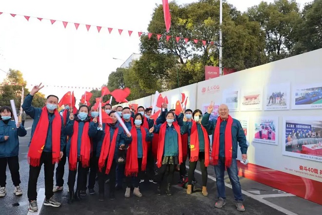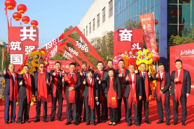 2021年11月28日上午,天工廠區(qū)內(nèi)外彩旗飄揚(yáng),鑼鼓喧天,獅舞龍飛,來(lái)自全國(guó)各地的合作伙伴以及行業(yè)領(lǐng)導(dǎo)專家、新聞媒體近500人,圍著喜慶的紅圍巾,陸續(xù)穿過(guò)天工40年“時(shí)光隧道”,走進(jìn)天工國(guó)際文體中心;3000多名員工臉上洋溢著幸福、自豪的笑容,在各分廠廠長(zhǎng)的帶領(lǐng)下有序參觀公司發(fā)展歷史圖片展長(zhǎng)廊……這是天工國(guó)際隆重慶祝公司成立40周年慶典的喜慶場(chǎng)面。