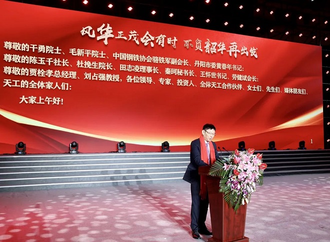 11月28日,來(lái)自全國(guó)的合作伙伴、行業(yè)領(lǐng)導(dǎo)、專家以及新聞媒體出席了慶祝活動(dòng)。中國(guó)工程院干勇院士、毛新平院士,中國(guó)鋼鐵工業(yè)協(xié)會(huì)黨委常委、副會(huì)長(zhǎng)駱鐵軍,中共丹陽(yáng)市委書(shū)記黃春年,丹陽(yáng)市丹北鎮(zhèn)黨委書(shū)記陸云飛,鋼鐵研究總院黨委書(shū)記、常務(wù)副院長(zhǎng)杜挽生,中國(guó)金屬學(xué)會(huì)常務(wù)副理事長(zhǎng)田志凌、中國(guó)特鋼企業(yè)協(xié)會(huì)黨委書(shū)記王懷世,全國(guó)工商聯(lián)五金機(jī)電商會(huì)常務(wù)副會(huì)長(zhǎng)勞健斌,中國(guó)冶金報(bào)社黨委書(shū)記、社長(zhǎng)陳玉千等領(lǐng)導(dǎo)、專家出席慶典活動(dòng)并致辭祝賀。慶典為記錄天工40年創(chuàng)業(yè)發(fā)展史的《天工記憶》一書(shū)舉行了首發(fā)儀式,中國(guó)工業(yè)報(bào)社副總編、《天工記憶》主稿人嚴(yán)曼青出席首發(fā)儀式并分享創(chuàng)作感受。天工國(guó)際董事局主席朱小坤致“風(fēng)華正茂會(huì)有時(shí),不負(fù)韶華再出發(fā)”40周年慶典主題賀辭。