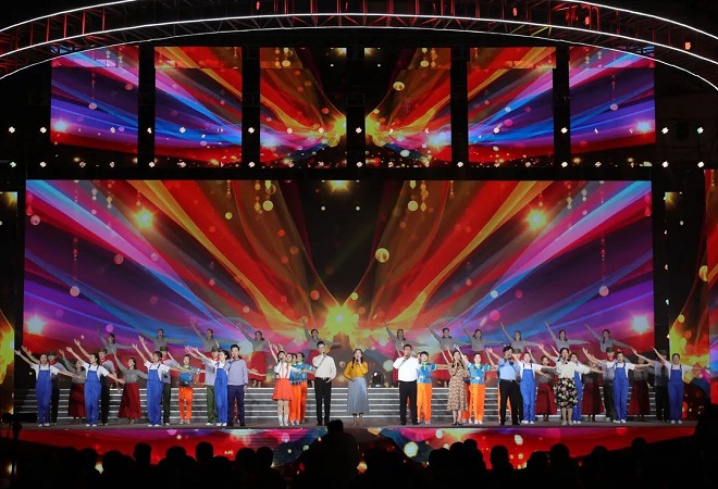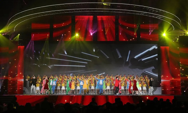 慶典致辭結(jié)束后,在一首感人的生日快樂(lè)歌歌聲里,天工40歲生日蛋糕呈現(xiàn)在舞臺(tái)之上,一場(chǎng)精彩紛呈的文藝演出就此拉開(kāi)帷幕。演出通過(guò)幾個(gè)歷史階段的記錄短片再次呈現(xiàn)了天工人創(chuàng)業(yè)發(fā)展的艱辛歷程和偉大成就,向參會(huì)嘉賓、全體天工人展示了天工40年的發(fā)展故事和文化沉淀。