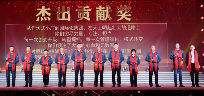 在文藝演出過(guò)程中,慶典現(xiàn)場(chǎng)還對(duì)為公司創(chuàng)業(yè)發(fā)展作出巨大功勛、為企業(yè)持續(xù)發(fā)展作出杰出貢獻(xiàn)、為堅(jiān)守崗位與天工一路前行的忠誠(chéng)敬業(yè)員工等典型代表進(jìn)行了隆重表彰,頒發(fā)了獎(jiǎng)牌;同時(shí)為與天工攜手同行、互利共贏的Techtronics Industries Coltd、Stanley Black Decker Inc 、上海西美進(jìn)出口有限公司等八家合作伙伴頒發(fā)了卓越伙伴獎(jiǎng)。