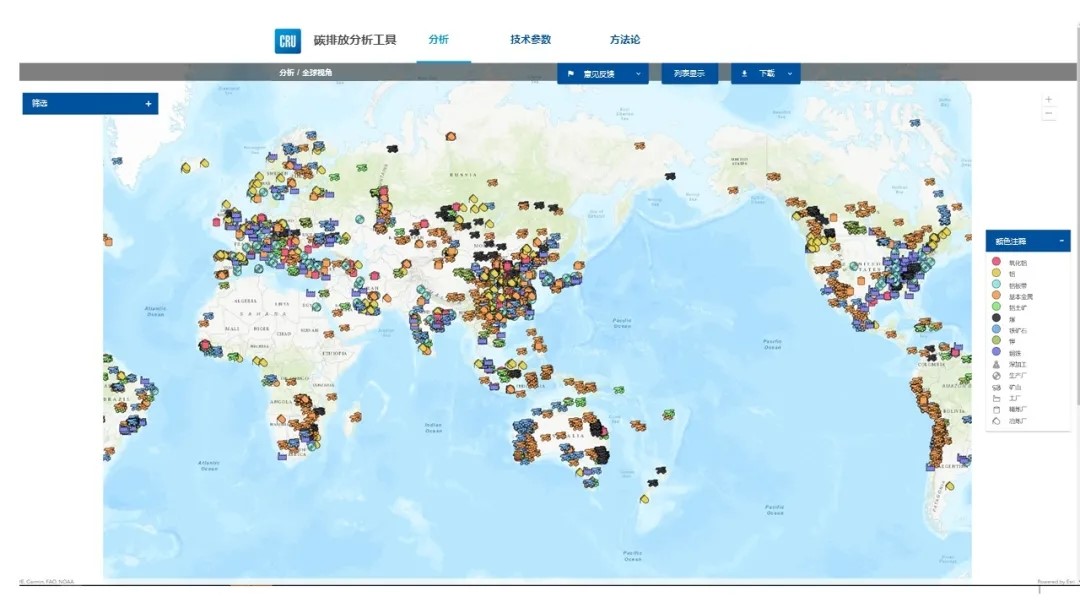 圖2:英國商品研究所CRU碳排放分析工具互動式資產地圖