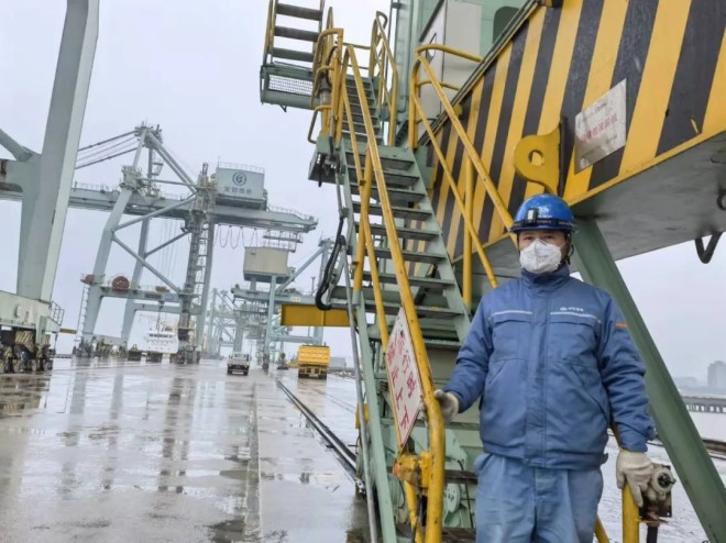 中冶寶鋼綜合碼頭港機作業區域”機長“王傳舉操作港機