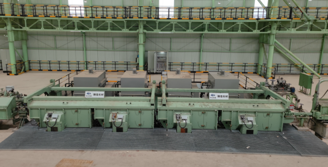 其中,80萬噸高速棒材生產線采用了中冶京誠榮獲冶金科學技術一等獎的新一代高棒核心技術“柔性化高速棒材關鍵技術與裝備”。單一孔型柔性軋制的實現,有效提升了產線的作業率。核心設備高速上鋼系統最大速度可以穩定達到45m/s,控制精度高,壽命長,代表了目前高速上鋼設備的最高水平。高速線材生產線更是采用了由中冶京誠設計研發的國產首臺(套)減定徑模塊化機組,成功填補了國產高速精密軋制的空白。