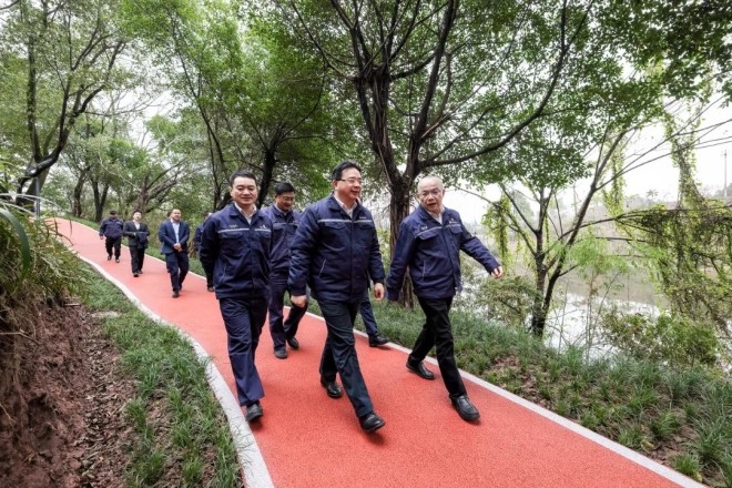 會后,李世平一行現場調研指導了公司“我為群眾辦實事”實踐教育活動的實事項目——龍山步道及閑趣園宿舍建設。