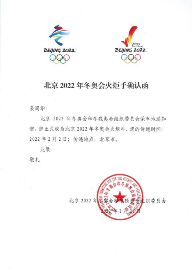 姜周華教授作為科技界和教育界的杰出代表當(dāng)選2022年北京冬奧會火炬手,受邀參加本次冬奧會火炬?zhèn)鬟f活動,成為我校歷史上首位冬奧會火炬手。