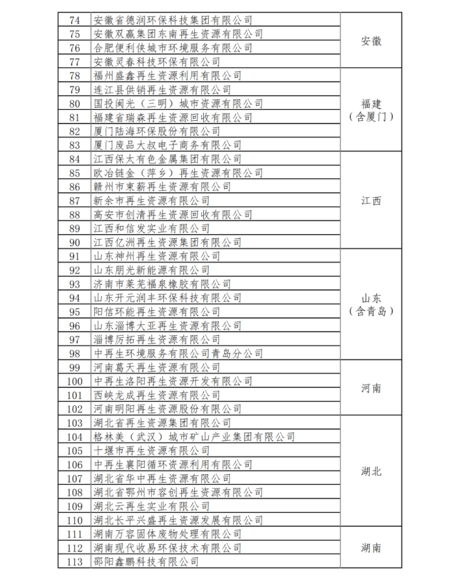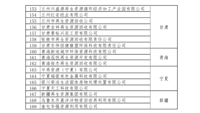 第40號公告的下發,對再生資源虛開發票泛濫的問題提供了政策引領,此公告下發的第二天,國家商務部發布了《關于重點聯系再生資源回收企業名單的公示》,其中涉及符合最新資源綜合利用增值稅政策的169家再生資源回收企業。詳見如下名單: