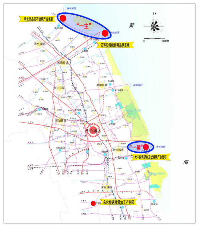 依托黃海新區濱海沿海片區建設千萬噸級沿海綠色精品鋼基地的要素資源條件,謀劃重大項目,承接產能集聚,力爭近中期形成1000萬噸級粗鋼產能規模(至2025年),中遠期形成2000萬噸級以上粗鋼產能規模(至2035年)。將濱海沿海片區打造成為產品門類豐富、要素資源共享、綠色低碳環保、產城融合發展的鋼鐵基地。臨海的鹽城濱海正成為沿海一顆“新星”。總投資超千億元的寶武2000萬噸“綠色、智慧、精品”鋼生產基地落地濱海后,將打造全球最先進的完全新建的鋼鐵行業智慧型未來鋼廠。