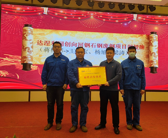 在驗收儀式上,石鋼廢鋼項目部向達涅利同創授予“最佳實施創新團隊”的光榮稱號,同時,達涅利同創與石鋼廢鋼項目部作為“最佳合作伙伴”合影留念。這也標志著雙方愿一同繼續夯實合作基礎,建立長期、穩固、協同發展的戰略合作關系,繼續深化雙方在數字化和智能制造上的合作,讓雙方的合作引領行業發展方向,成為我國乃至全球特鋼企業典范。