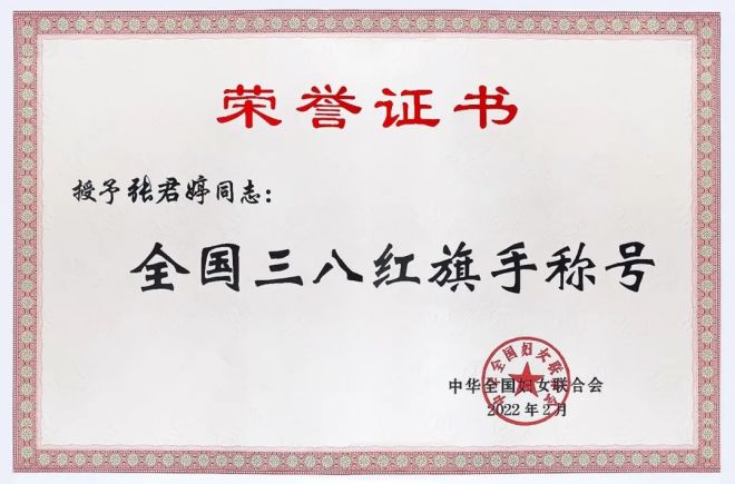 3月3日,中華全國婦女聯合會公布了2021年度全國三八紅旗手名單,天津榮程聯合鋼鐵集團有限公司董事長張君婷榮獲全國三八紅旗手榮譽稱號,這是繼2009年榮程集團董事會主席張榮華榮獲全國三八紅旗手榮譽稱號后,榮程集團巾幗精神的接力傳承。