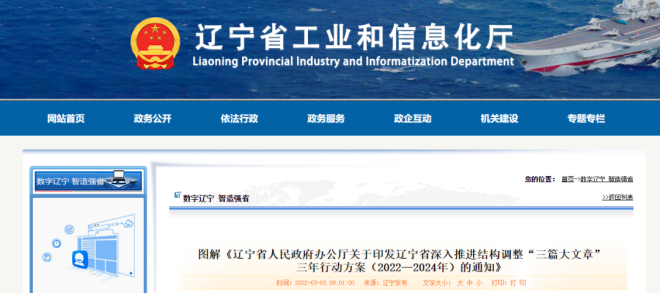 做好改造升級“老字號”、深度開發“原字號”、培育壯大“新字號”結構調整“三篇大文章”,是習近平總書記對東北振興、遼寧振興提出的明確要求,是維護國家“五大安全”的重要舉措。近日,遼寧省工信廳網站對《遼寧省深入推進結構調整“三篇大文章”三年行動方案(2022—2024年)》(以下簡稱《方案》)的具體內容進行了解讀。