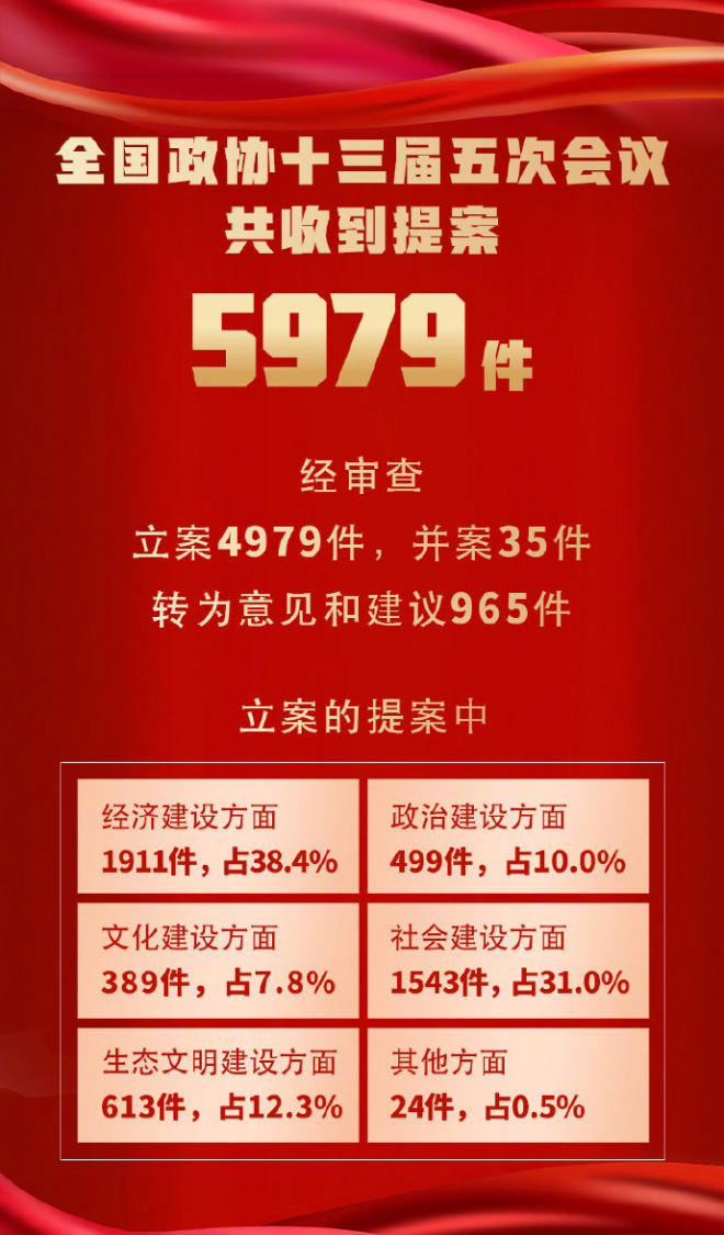 這場春天的盛會里,一份份閃亮的成績單令人鼓舞,一件件高質量的提案心系民生。會議共收到提案5979件,立案4979件。