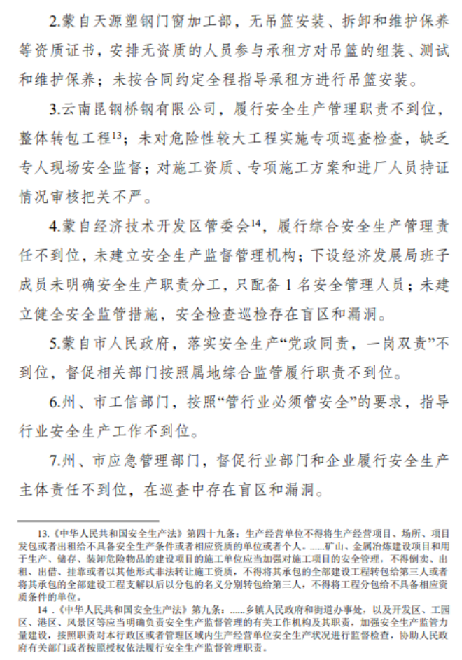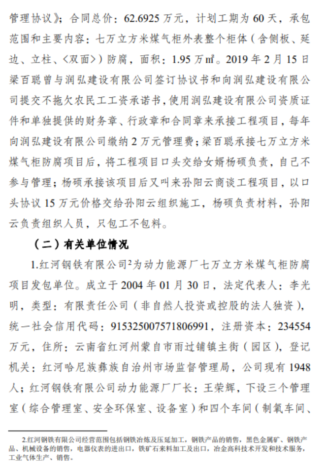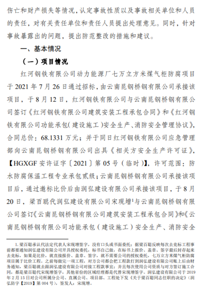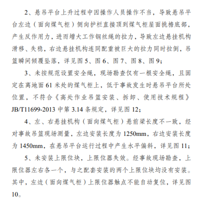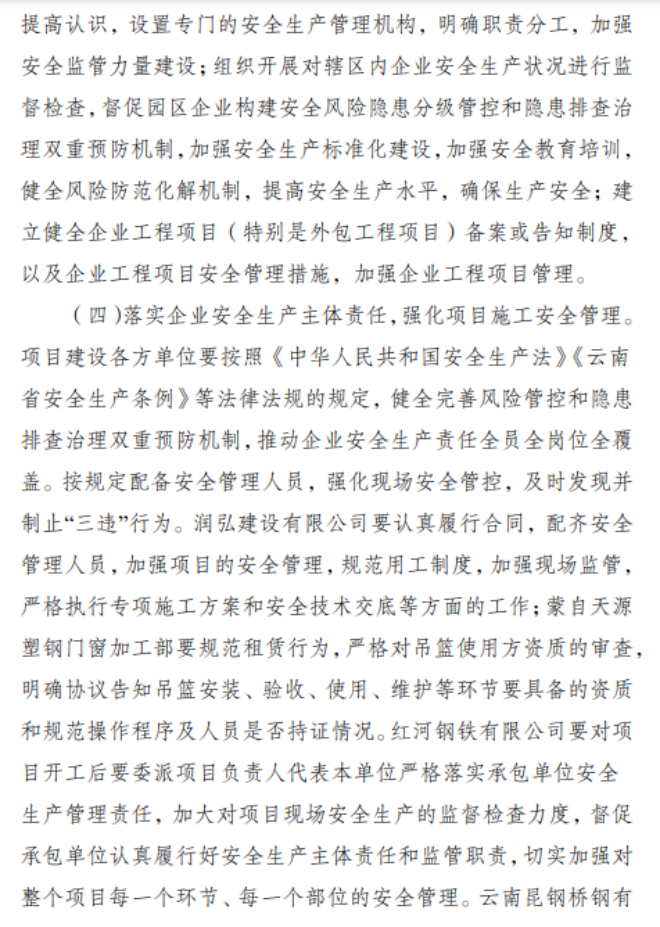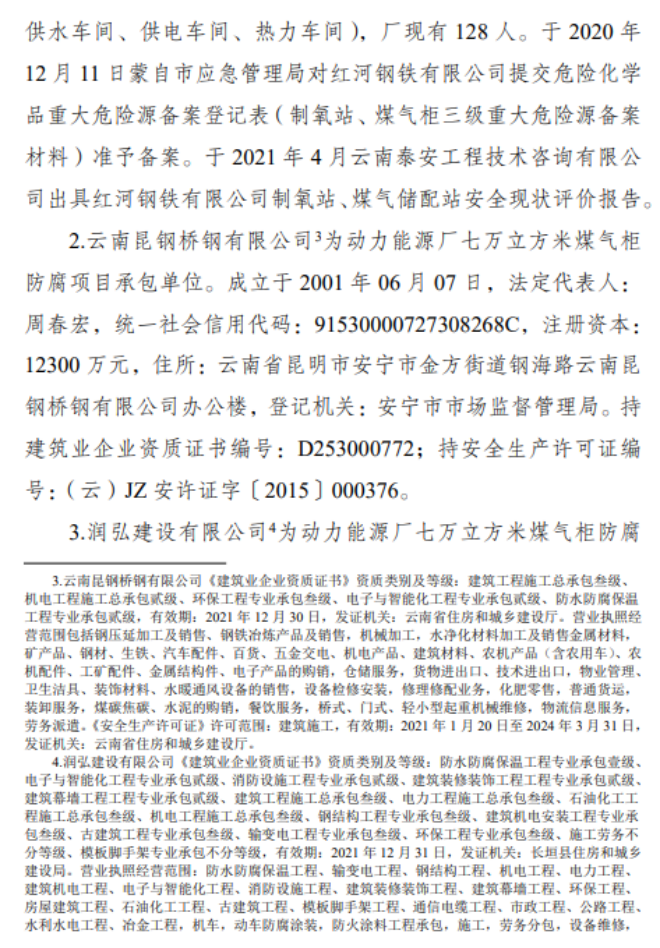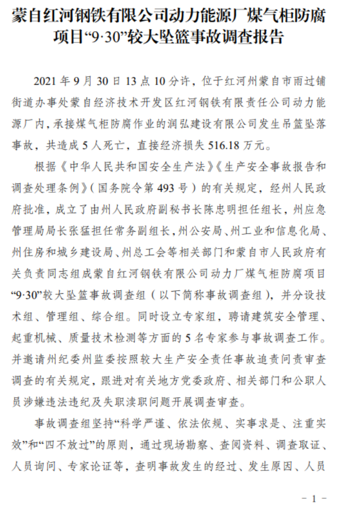 蒙自紅河鋼鐵有限公司動力能源廠煤氣柜防腐項目“9·30”較大墜籃事故調查報告
