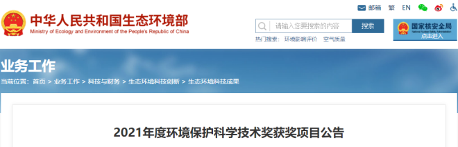 近日,生態(tài)環(huán)境部網(wǎng)站發(fā)布了《2021年度環(huán)境保護(hù)科學(xué)技術(shù)獎(jiǎng)獲獎(jiǎng)項(xiàng)目公告》(以下簡(jiǎn)稱(chēng)“《公告》”)。