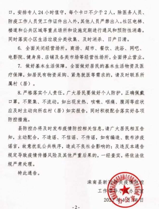 2.封控區域:遷安市全域。