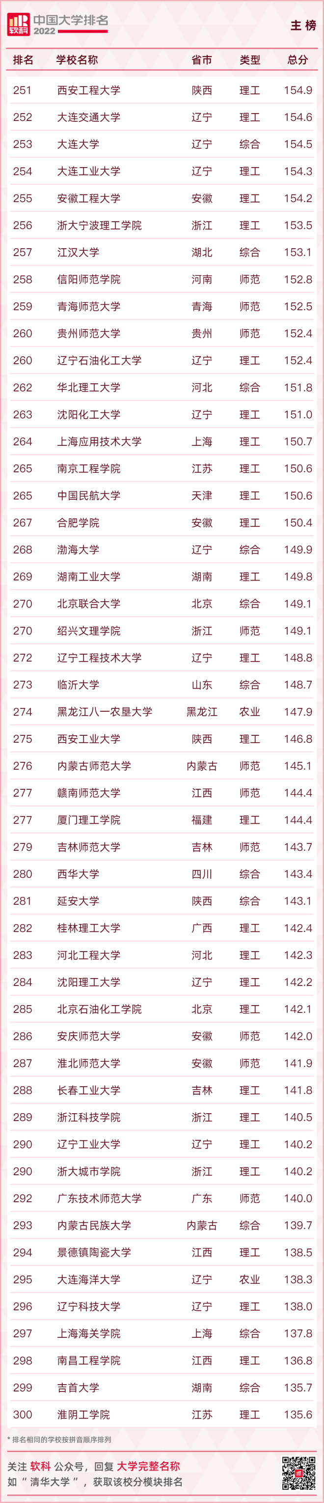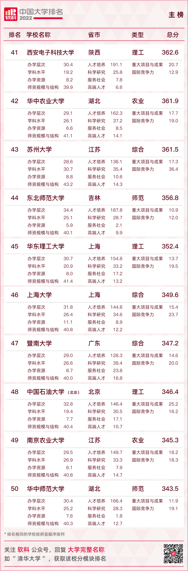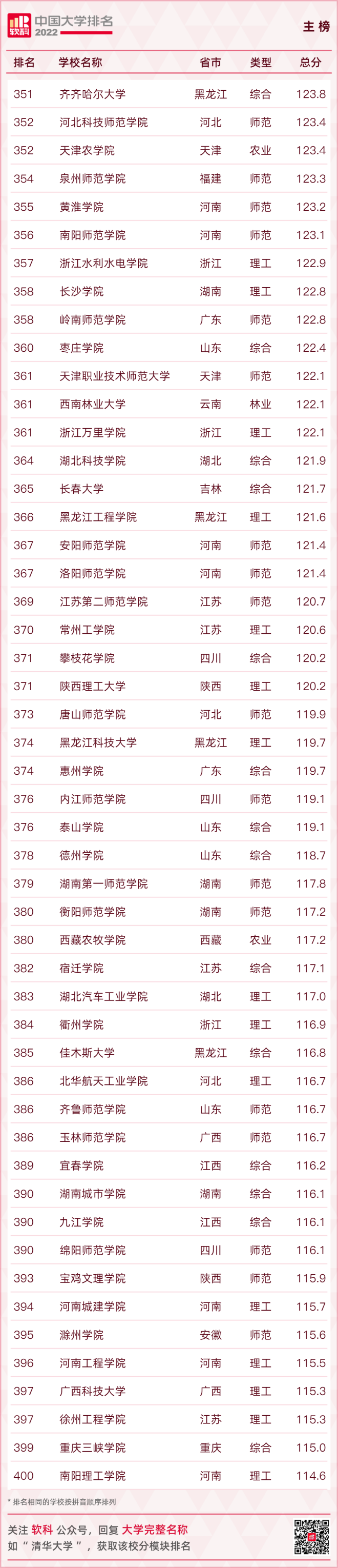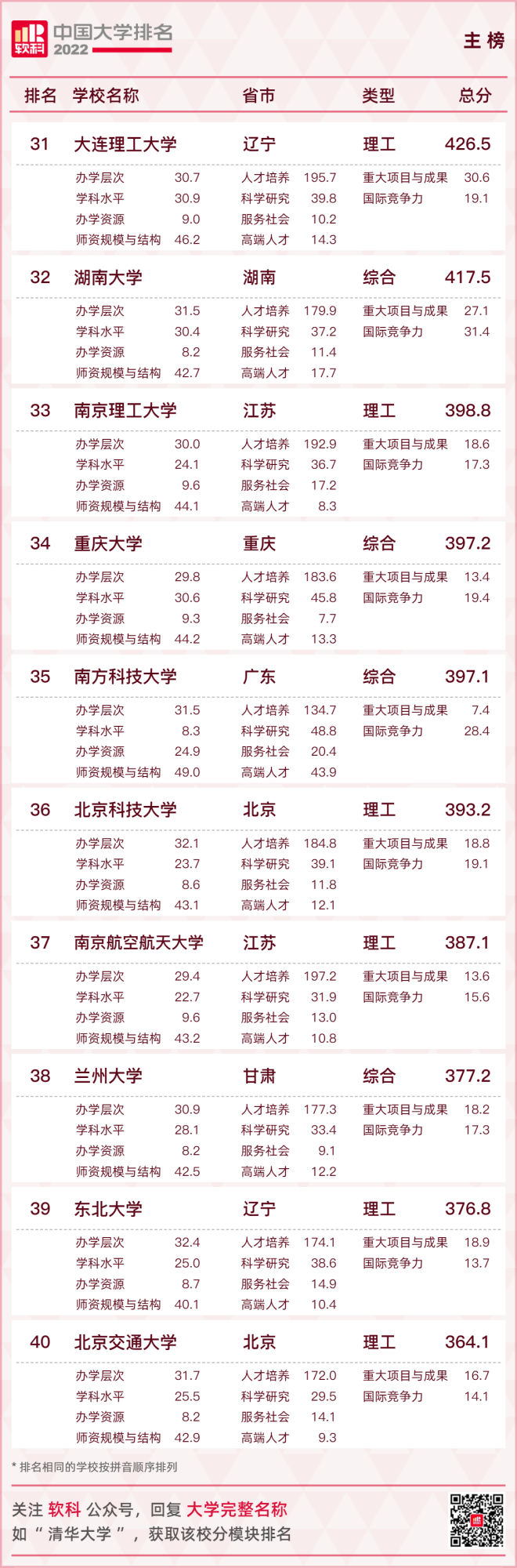 【2022軟科中國大學排名(主榜)】