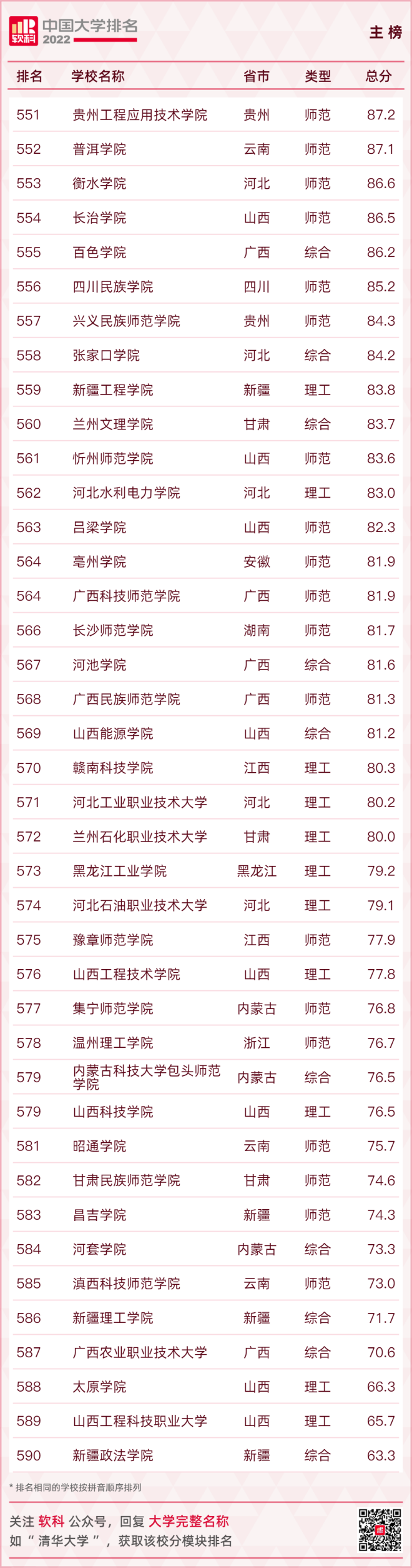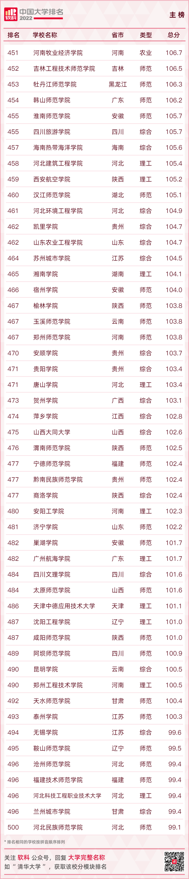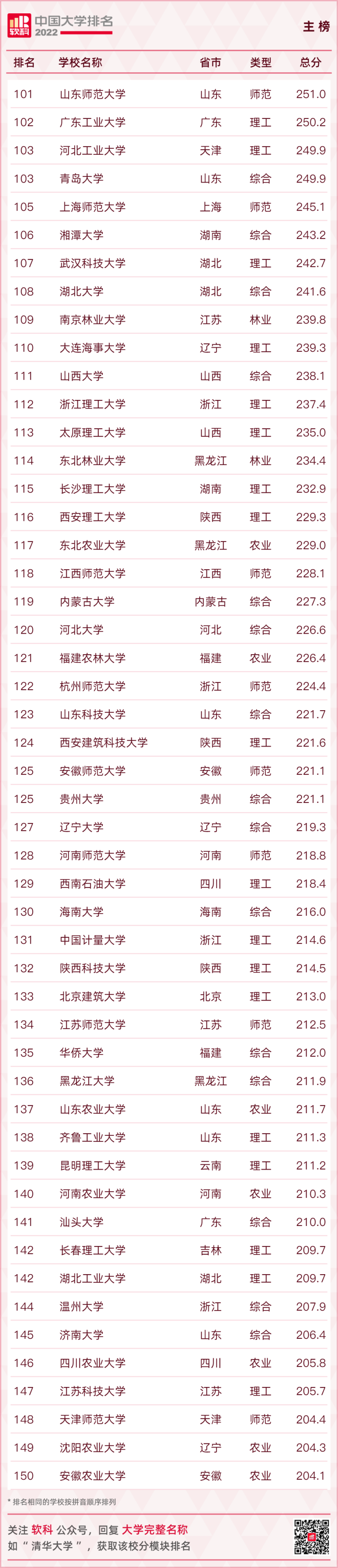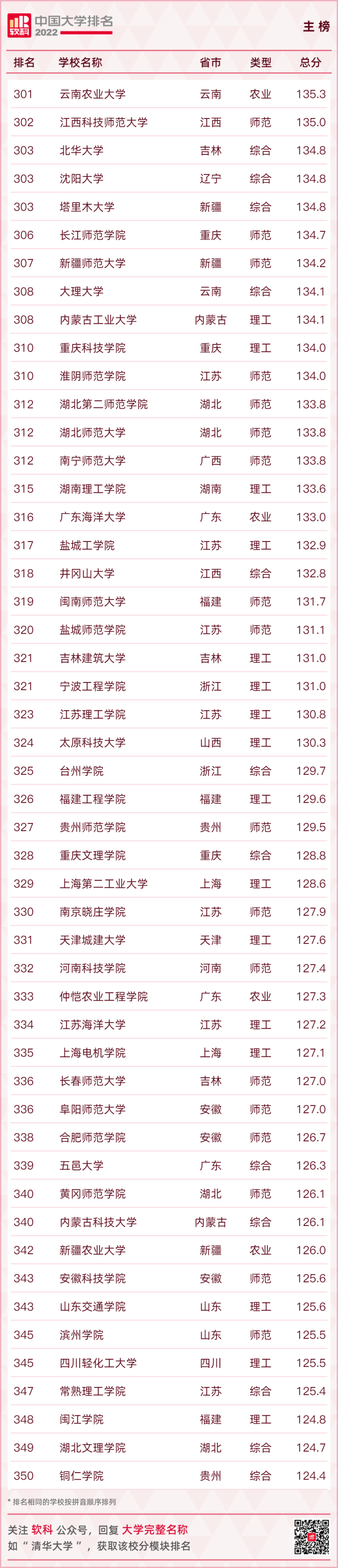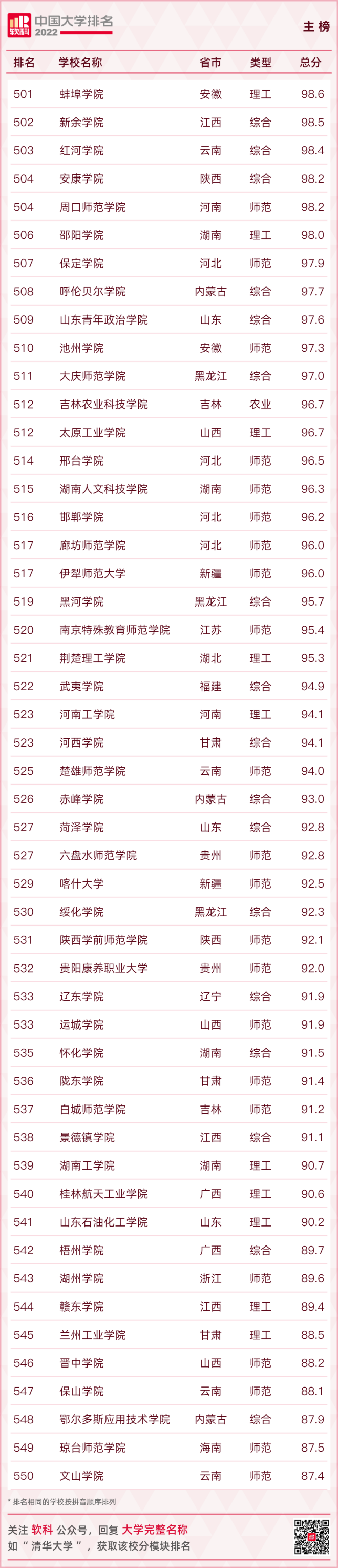 【2022軟科中國大學排名(主榜)】