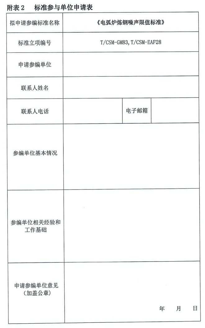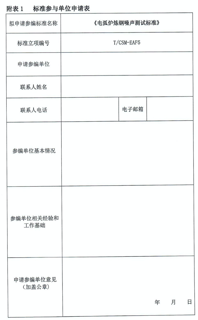 為實(shí)現(xiàn)鋼鐵行業(yè)企業(yè)噪聲排放監(jiān)管,規(guī)范鋼鐵行業(yè)企業(yè)噪聲排放數(shù)據(jù)管理等重點(diǎn)內(nèi)容,中國金屬學(xué)會現(xiàn)面向會員單位及相關(guān)單位公開征集噪聲測試及監(jiān)管方面立項(xiàng)研究及標(biāo)準(zhǔn)制訂參與單位。參與單位申請表見附表1-3。