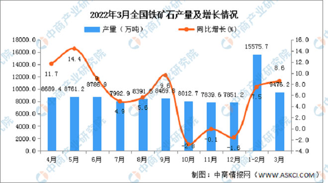 據(jù)統(tǒng)計(jì),年初以來國(guó)內(nèi)礦山利潤(rùn)水平較好,疊加生產(chǎn)指標(biāo)充裕,開工積極性提升,產(chǎn)量和開工率恢復(fù)速度較快。今年1—3月,我國(guó)鐵礦石原礦產(chǎn)量25555.8萬噸,同比增長(zhǎng)9%,其中3月單月環(huán)比增量近1萬噸。進(jìn)入4月后,國(guó)內(nèi)礦山的開工率和產(chǎn)量延續(xù)上行趨勢(shì),預(yù)計(jì)月度產(chǎn)量環(huán)比進(jìn)一步增加。5月,隨著疫情好轉(zhuǎn),國(guó)內(nèi)終端需求有望出現(xiàn)改善,礦價(jià)仍將維持高位運(yùn)行,國(guó)產(chǎn)礦產(chǎn)量有望進(jìn)一步增加。