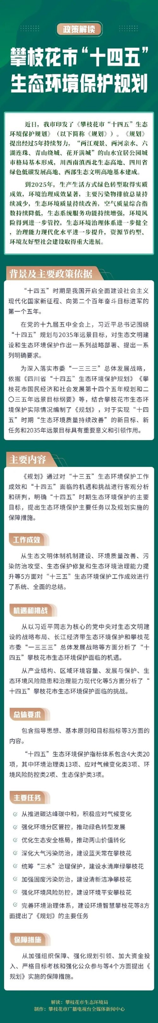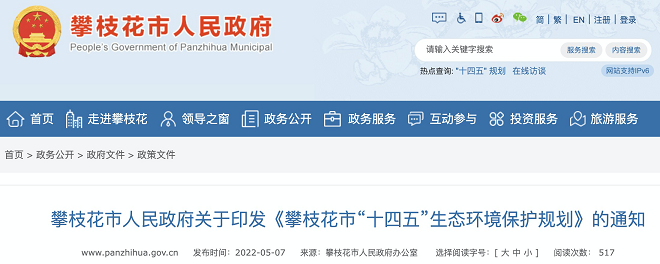 近日,攀枝花市人民政府網站發布了關于印發《攀枝花市“十四五”生態環境保護規劃》的通知(以下簡稱《通知》)。