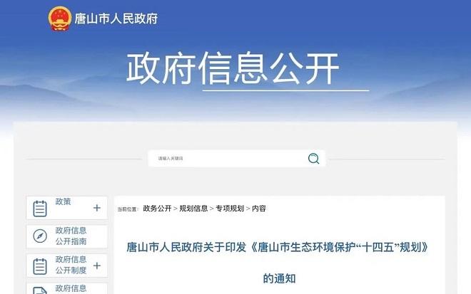 6月6日,唐山市人民政府網站發布了關于印發《唐山市生態環境保護“十四五”規劃》的通知(以下簡稱“《通知》”)。