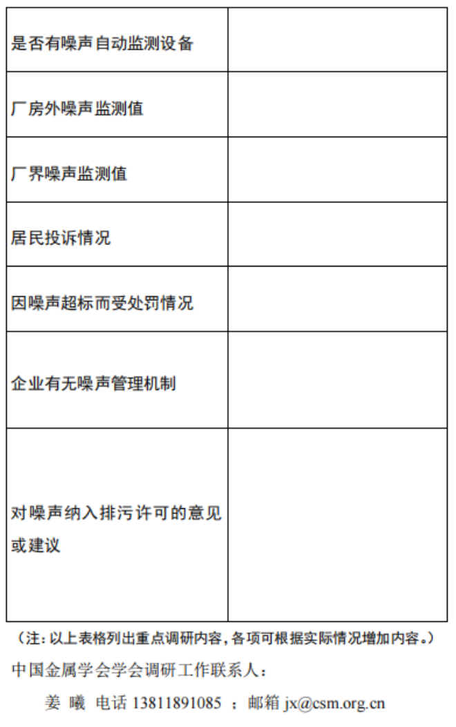 受生態環境部環境工程評估中心的委托,中國金屬學會擬在鋼鐵企業開展噪聲管理現狀調研,為后期制定《排污許可證申請與核發技術規范 工業噪聲》提供基礎工作。請各企業在調研中給予配合并填報《噪聲污染現狀調研表》,以便企業在生產運行中合理調度,控制噪聲污染,實現環境安全。