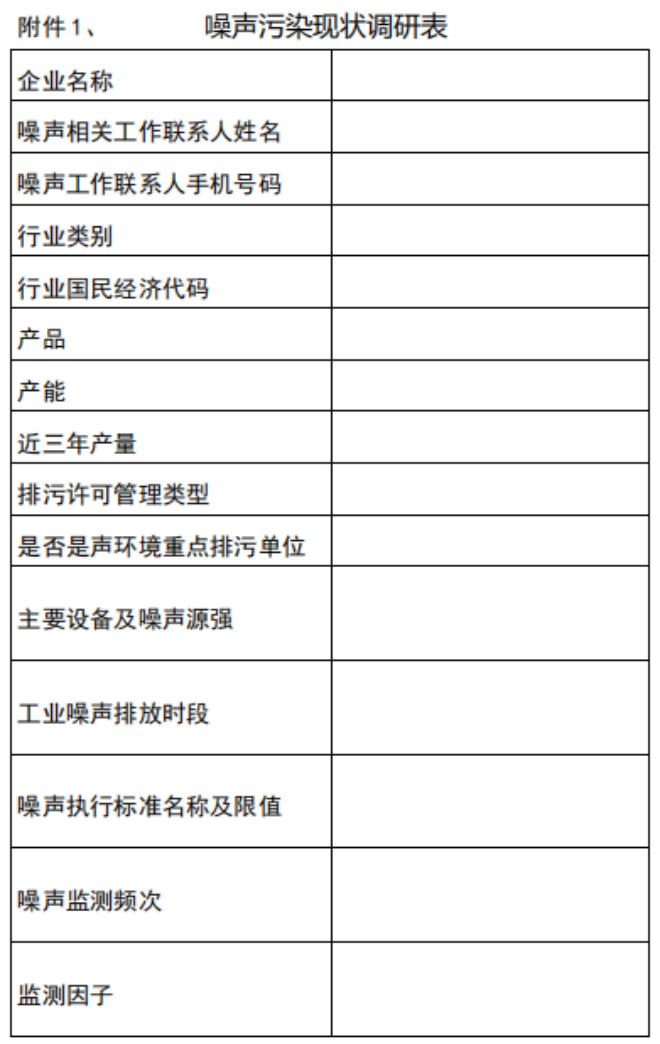附件1、噪聲污染現狀調研表