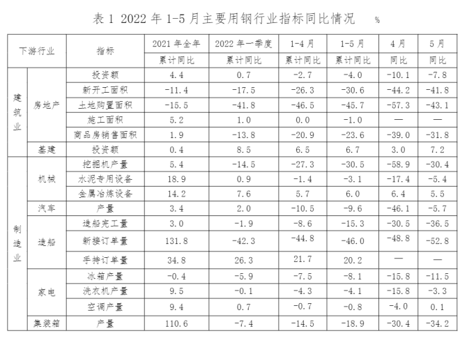 前5個月主要用鋼行業(yè)運行總體呈下行趨勢,5月鋼鐵需求環(huán)比回升